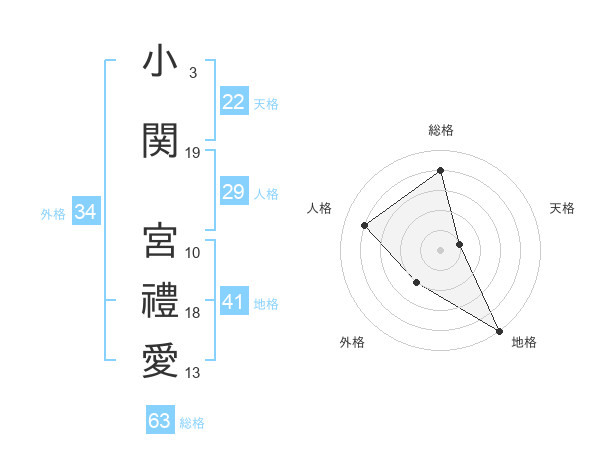 小関 宮禮愛さんの外格は34画の2点!