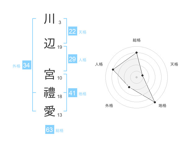 川辺 宮禮愛さんを姓名の画数から五運を鑑定