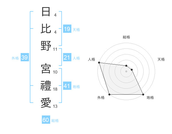日比野 宮禮愛さんを姓名の画数から五運を鑑定