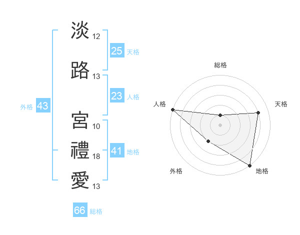 淡路 宮禮愛さんを姓名の画数から五運を鑑定