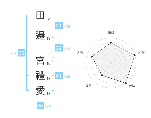 田邊 宮禮愛さんを姓名の画数から五運を鑑定