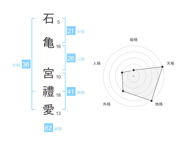 石亀 宮禮愛さんを姓名の画数から五運を鑑定
