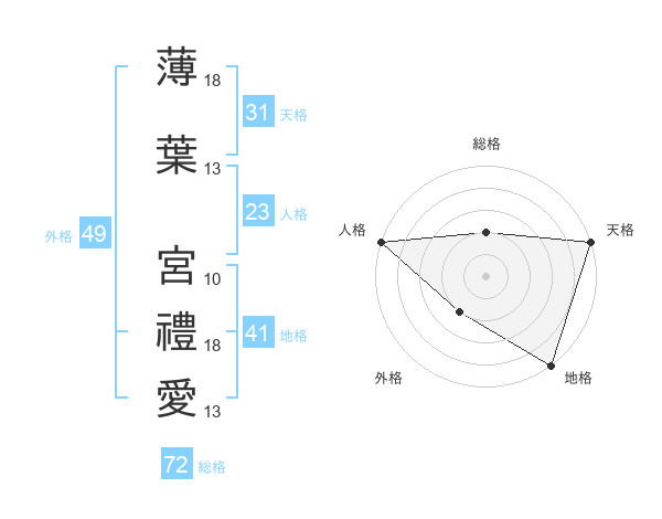 薄葉 宮禮愛さんを姓名の画数から五運を鑑定