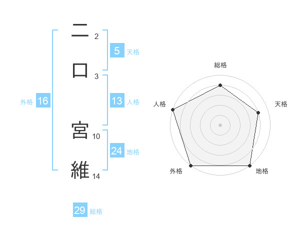 二口 宮維さんの総格は29画の4点!