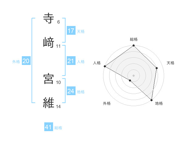 寺﨑 宮維さんの総格は41画の5点!