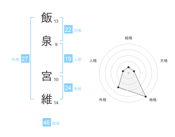 飯泉 宮維さんの総格は46画の1点!