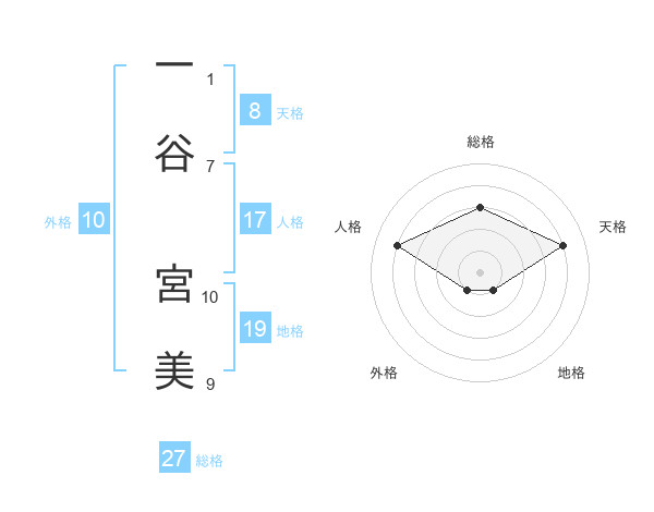 一谷 宮美さんを姓名の画数から五運を鑑定