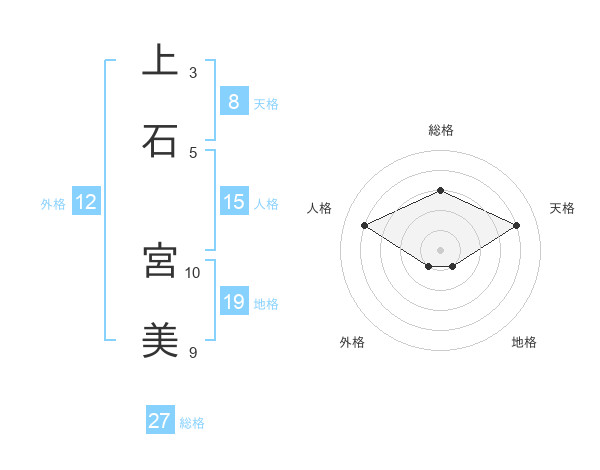 上石 宮美さんの総格は27画の3点!