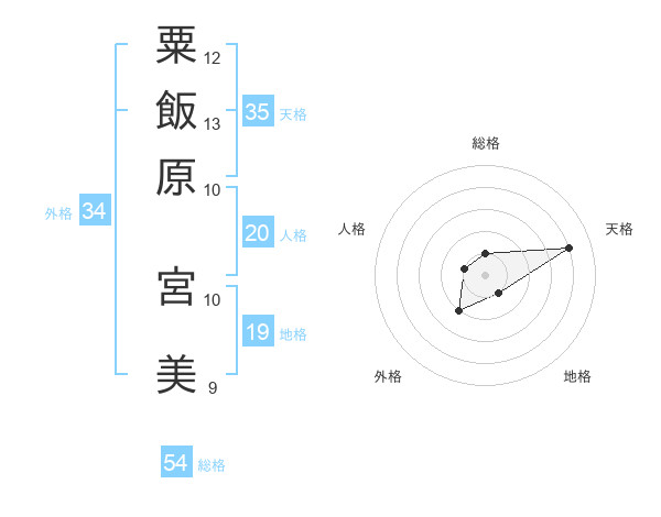 粟飯原 宮美さんの天格は35画の4点!