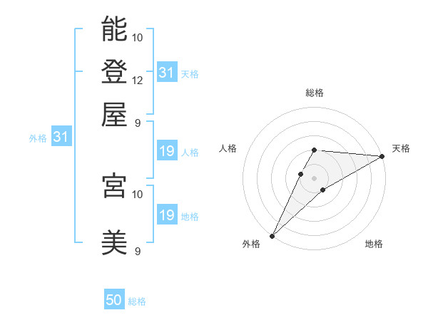 能登屋 宮美さんを姓名の画数から五運を鑑定