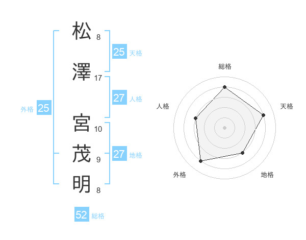 松澤 宮茂明さんの総格は52画の4点!