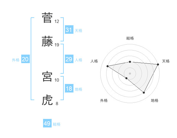 菅藤 宮虎さんの天格は31画の5点!