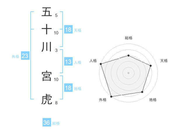 五十川 宮虎さんを姓名の画数から五運を鑑定