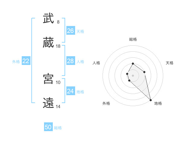 武蔵 宮遠さんを姓名の画数から五運を鑑定