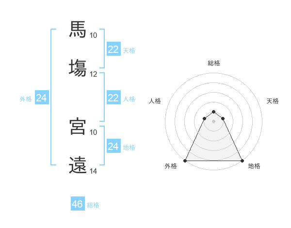 馬塲 宮遠さんを姓名の画数から五運を鑑定