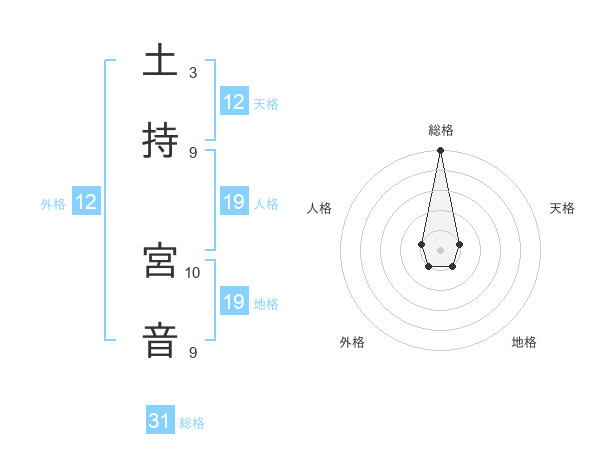 土持 宮音さんの総格は31画の5点!