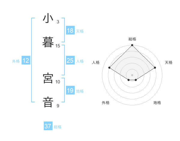 小暮 宮音さんを姓名の画数から五運を鑑定