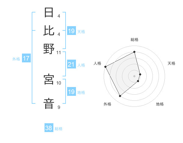 日比野 宮音さんの総格は38画の4点!