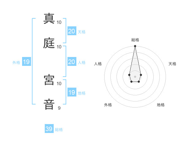 真庭 宮音さんを姓名の画数から五運を鑑定
