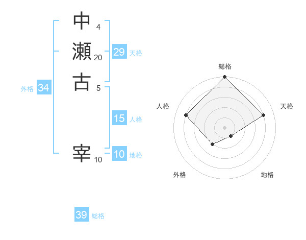 中瀬古 宰さんの総格は39画の5点!