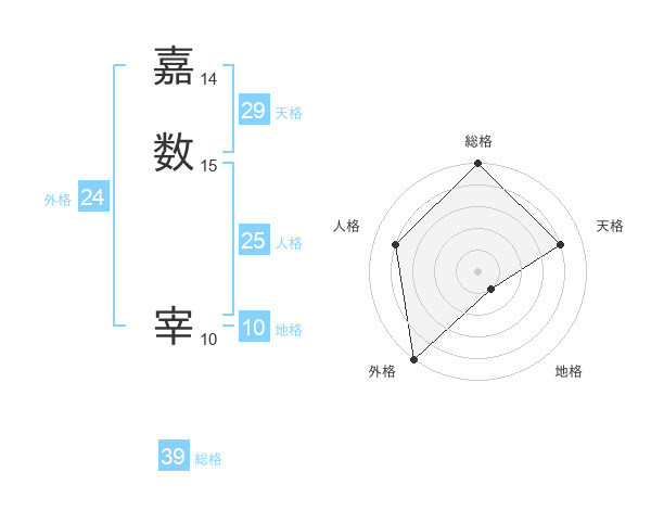 嘉数 宰さんを姓名の画数から五運を鑑定