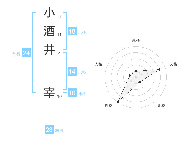 小酒井 宰さんの総格は28画の1点!