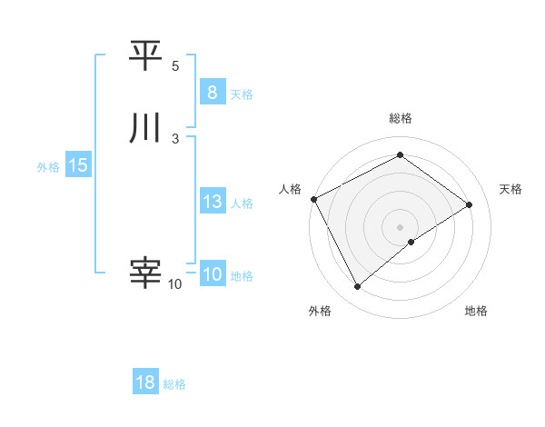 平川 宰さんの総格は18画の4点!