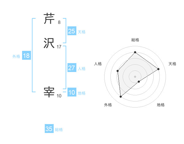 芹沢 宰さんを姓名の画数から五運を鑑定