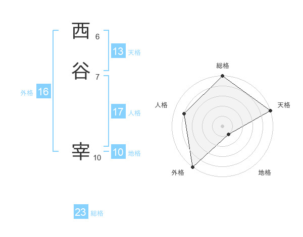西谷 宰さんの総格は23画の5点!