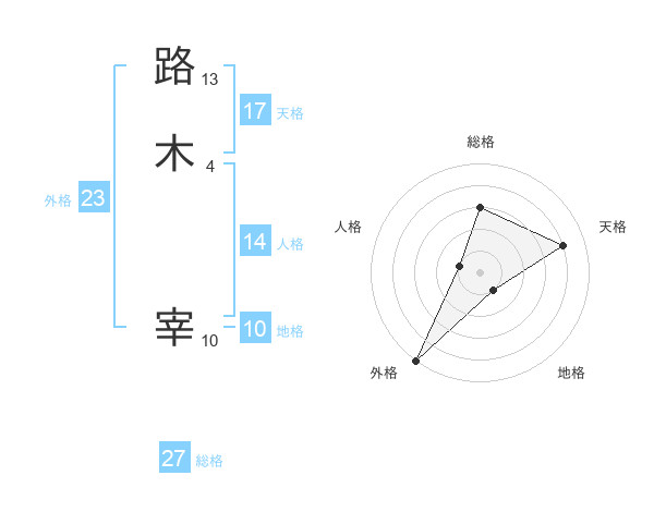 家系が持つ宿命的な運勢を表します。祖先から受け継いだ苗字ですので自分の力が及びません。家柄を象徴します。