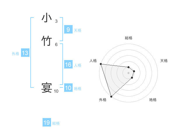 小竹 宴さんの外格は13画の5点!