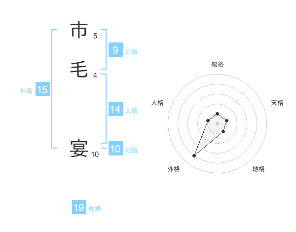 市毛 宴さんの総格は19画の1点!