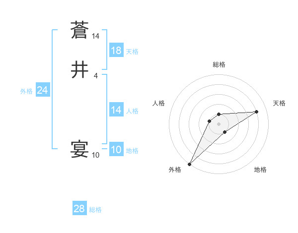 蒼井 宴さんを姓名の画数から五運を鑑定