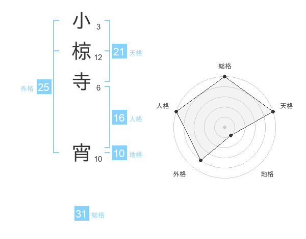 小椋寺 宵さんを姓名の画数から五運を鑑定