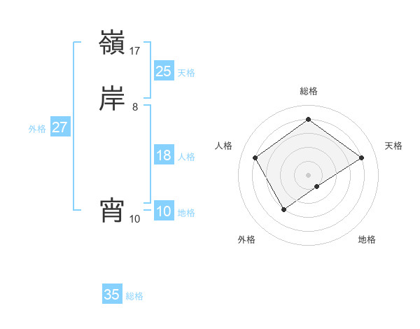 嶺岸 宵さんを姓名の画数から五運を鑑定