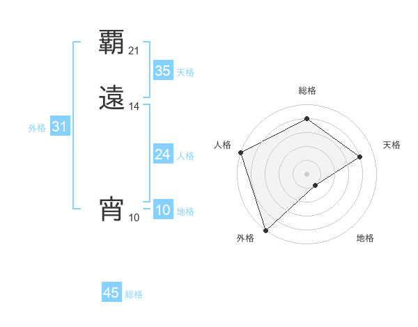 覇遠 宵さんの総格は45画の4点!