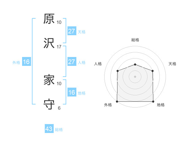 原沢 家守さんの外格は16画の5点!