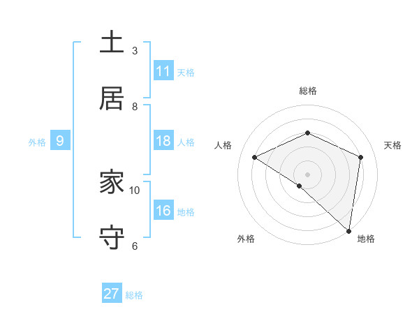 土居 家守さんの総格は27画の3点!
