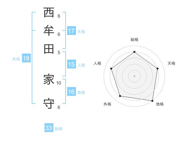 西牟田 家守さんの天格は17画の4点!