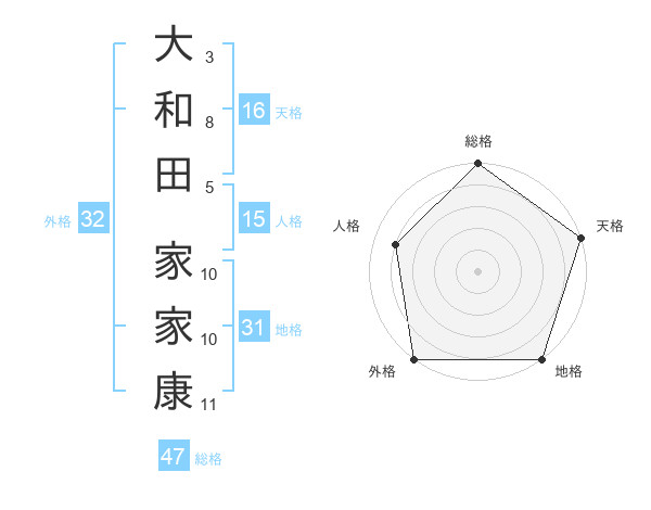 大和田 家家康さんを姓名の画数から五運を鑑定