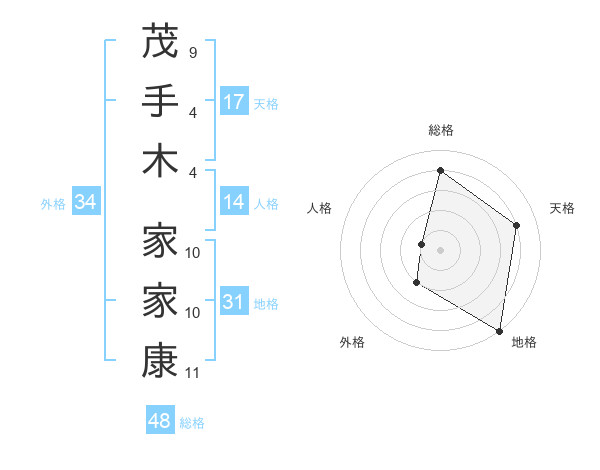 茂手木 家家康さんを姓名の画数から五運を鑑定