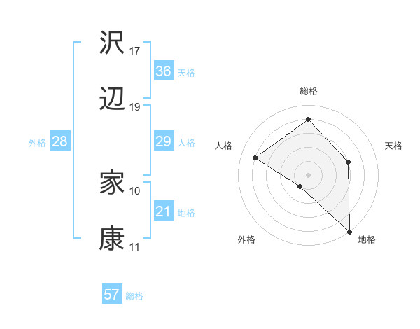 沢辺 家康さんの総格は57画の4点!
