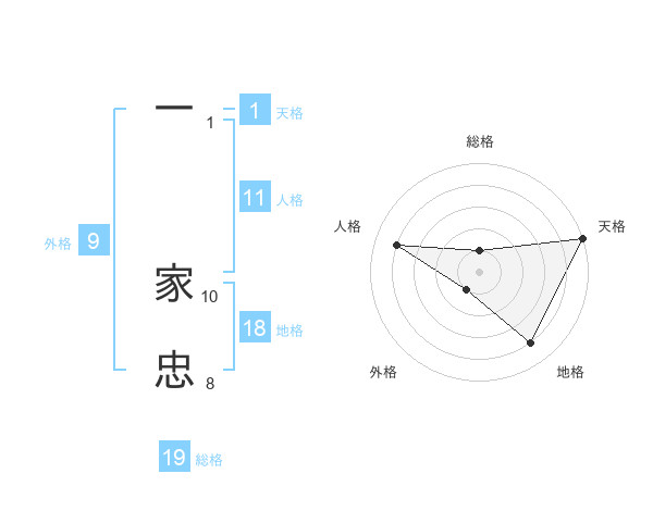 一 家忠さんの総格は19画の1点!