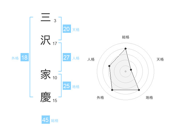 三沢 家慶さんを姓名の画数から五運を鑑定