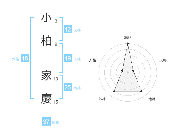 小柏 家慶さんを姓名の画数から五運を鑑定