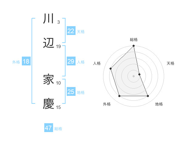 川辺 家慶さんを姓名の画数から五運を鑑定