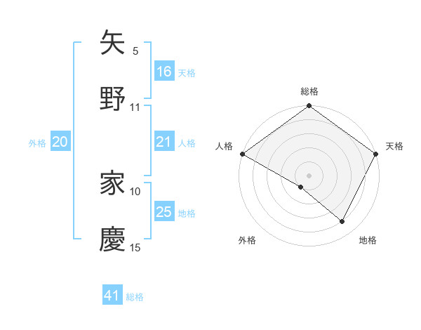 矢野 家慶さんを姓名の画数から五運を鑑定