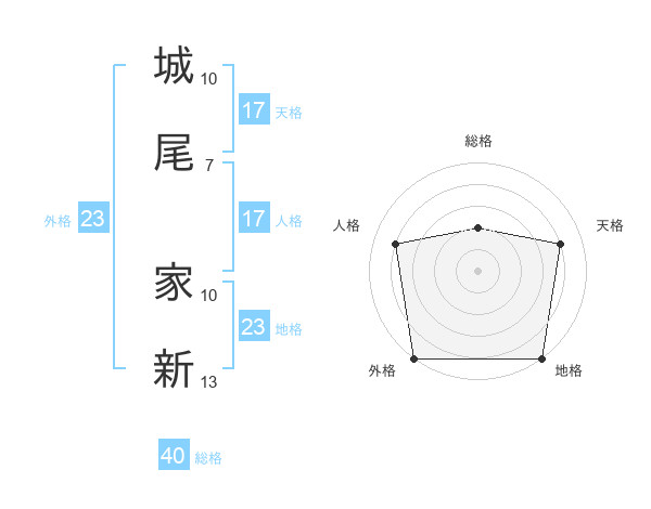 城尾 家新さんの地格は23画の5点!