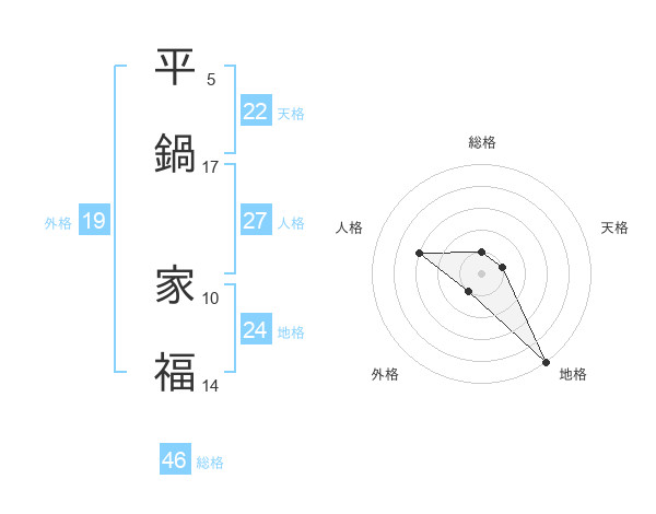 平鍋 家福さんを姓名の画数から五運を鑑定