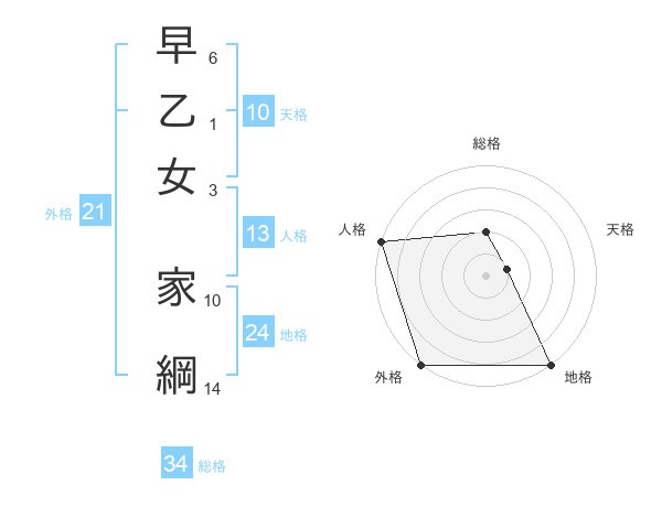 早乙女 家綱さんを姓名の画数から五運を鑑定